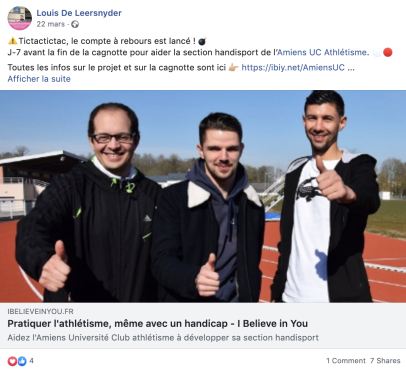 "C’est avec plaisir que je vous fais part de ma campagne de financement participatif en ligne sur la plateforme de crowdfunding I Believe In You.