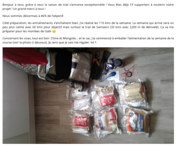 En partageant des anecdotes et des nouvelles de tes entraînements, compétition ou autres activités liées à ton projet, tu attires indirectement l'attention de ton entourage sur ta cagnotte. Et pour ceux qui ont déjà contribué, c'est vraiment sympa d'avoir de tes nouvelles !