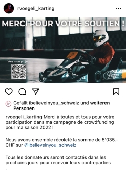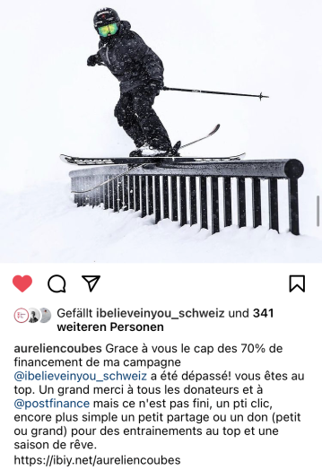 - Pour atteindre mon rêve sportif, je recherche encore CHF XX : insérer lien-court