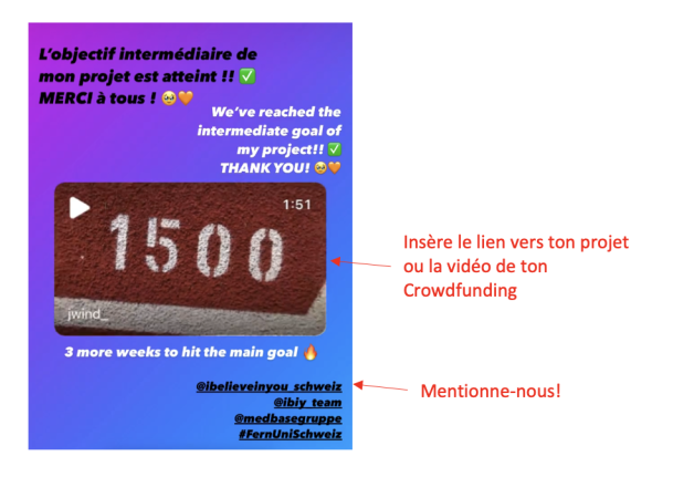 Dès que ta cagnotte passe un nouveau seuil, profites-en pour communiquer sur ton projet.